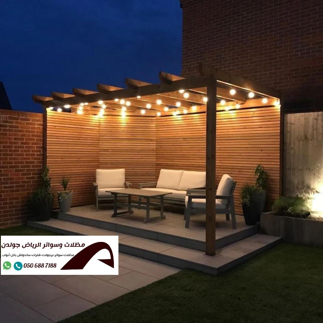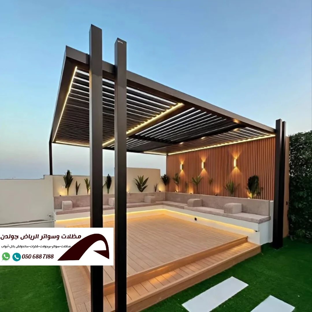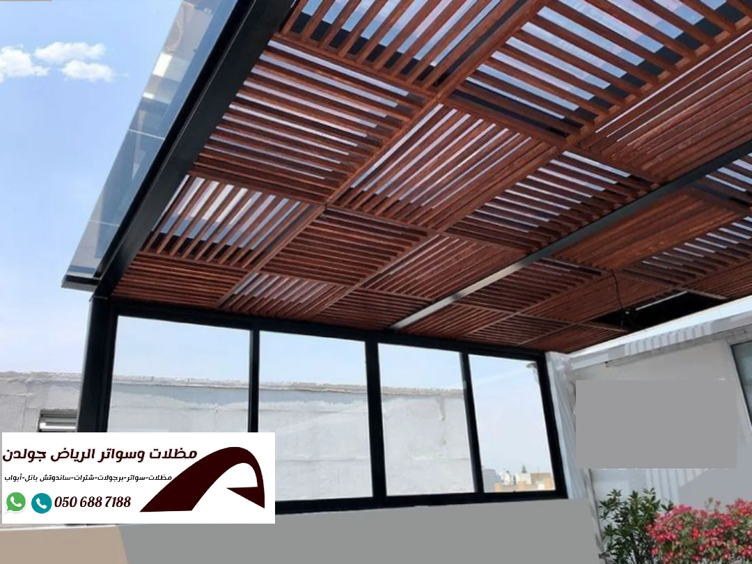 | مظلات خشبية أو بديل الخشب | مظهر طبيعي، مثالية للجلسات والروف تيراس |