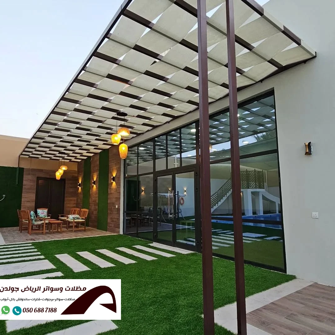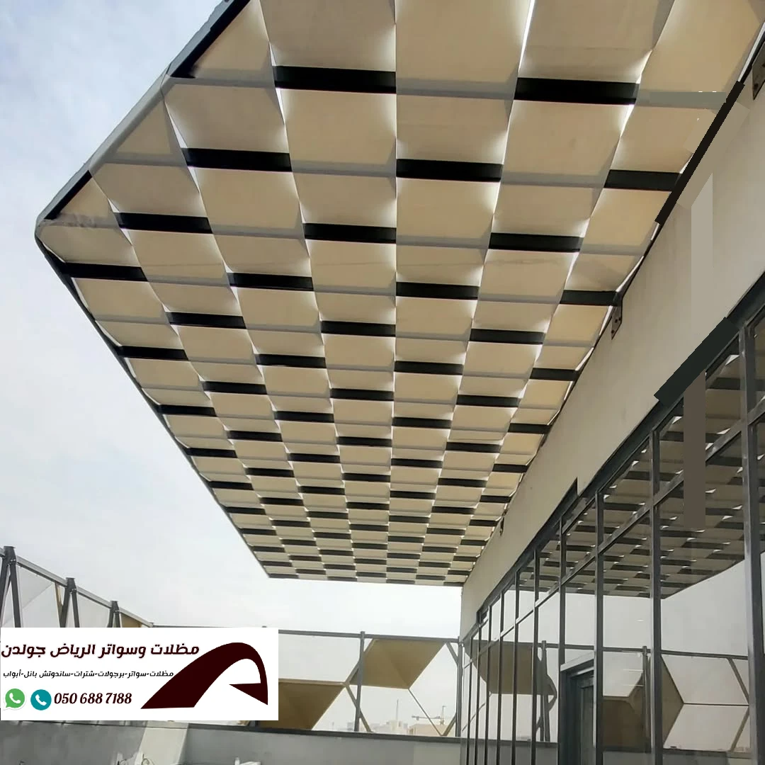 توريد و تركيب مظلات قماش بجميع الأشكال والتصاميم في الرياض، وذلك بإستخدام أفضل خامات القماش المتوفرة عالميًا بما فيه القماش الكوري، الألماني، الأسترالي والوطني، خصوصا ال بي في سي(PVC) و بوثلين، حيث تتميز بتصاميم عصرية وخامات مقاومة للحرارة والأمطار والعوامل الجوية القاسية. علاوة على ذلك نظمن لكم جودة عالية، اسعار مناسبة، تركيب سريع وضمان يصل إلى 10 سنوات.